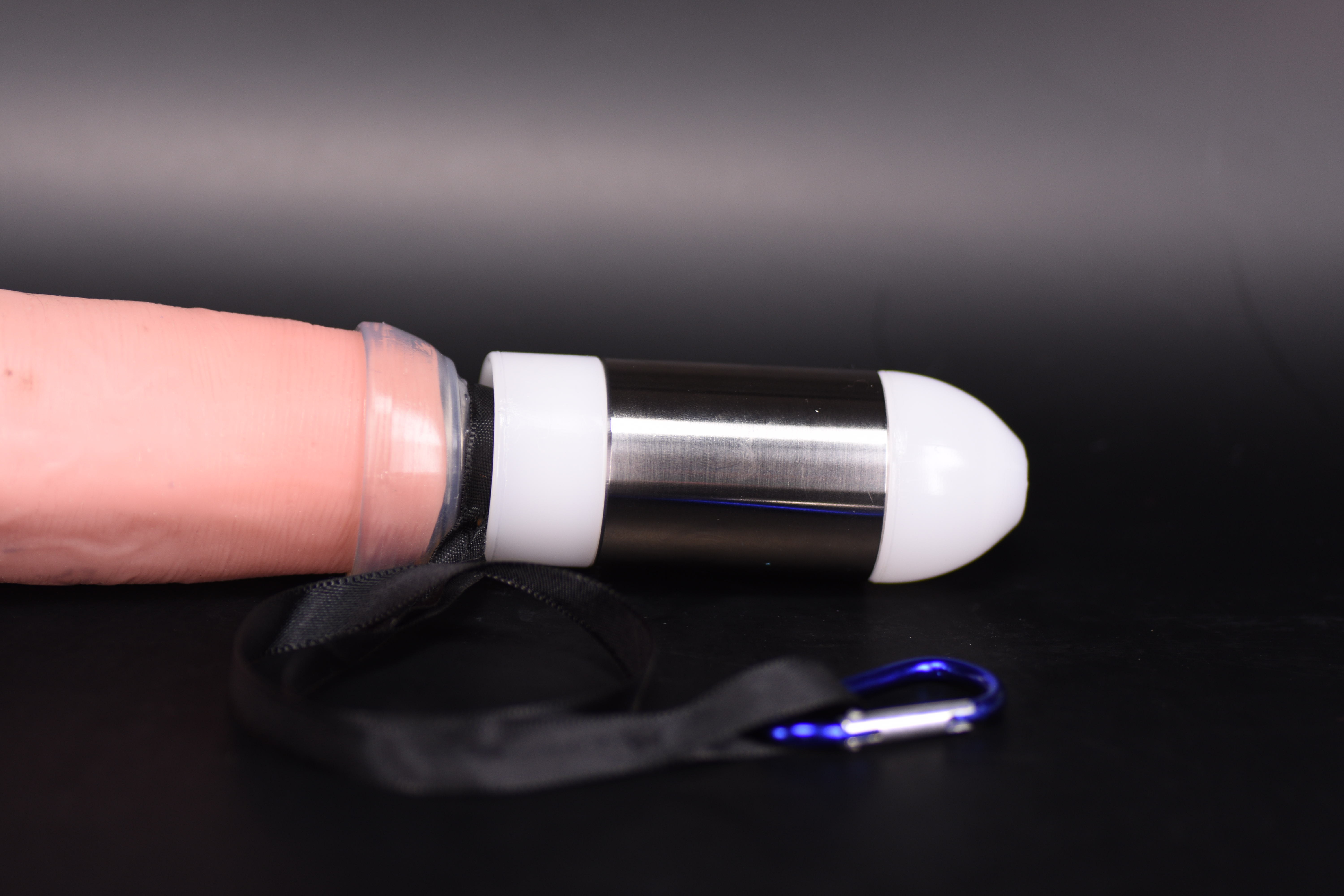 Roll your shaft skin up the body of The P-tainer as far as you can. You may need to gently grab your skin and pull it up to get it all the way to the neck of the retainer. If you can't reach the neck, your P-tainer may be too long.